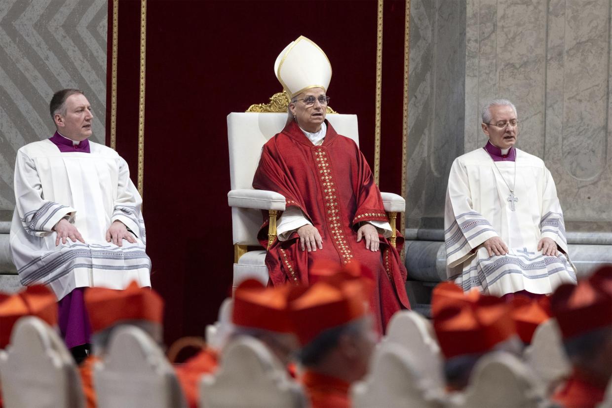 XIV. Leó pápa (k) nagypénteki misét tart a vatikáni Szent Péter-bazilikában 2026. április 3-án. Nagypéntek Jézus Krisztus kereszthalálának emléknapja. Fotó: MTI/EPA/ANSA/Massimo Percossi